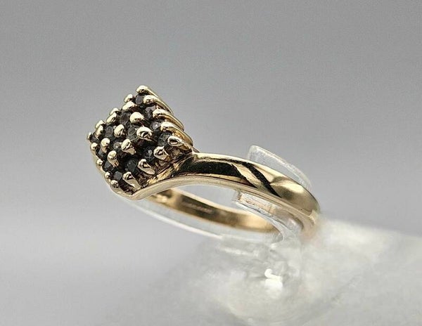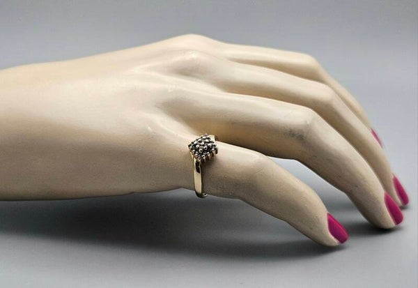 Deze prachtige vintage dames ring is een perfecte basis om mee aan te schuiven. De ring is gemaakt van 9 karaat en gezet met briljant geslepen groene diamanten van 0.22 ct.