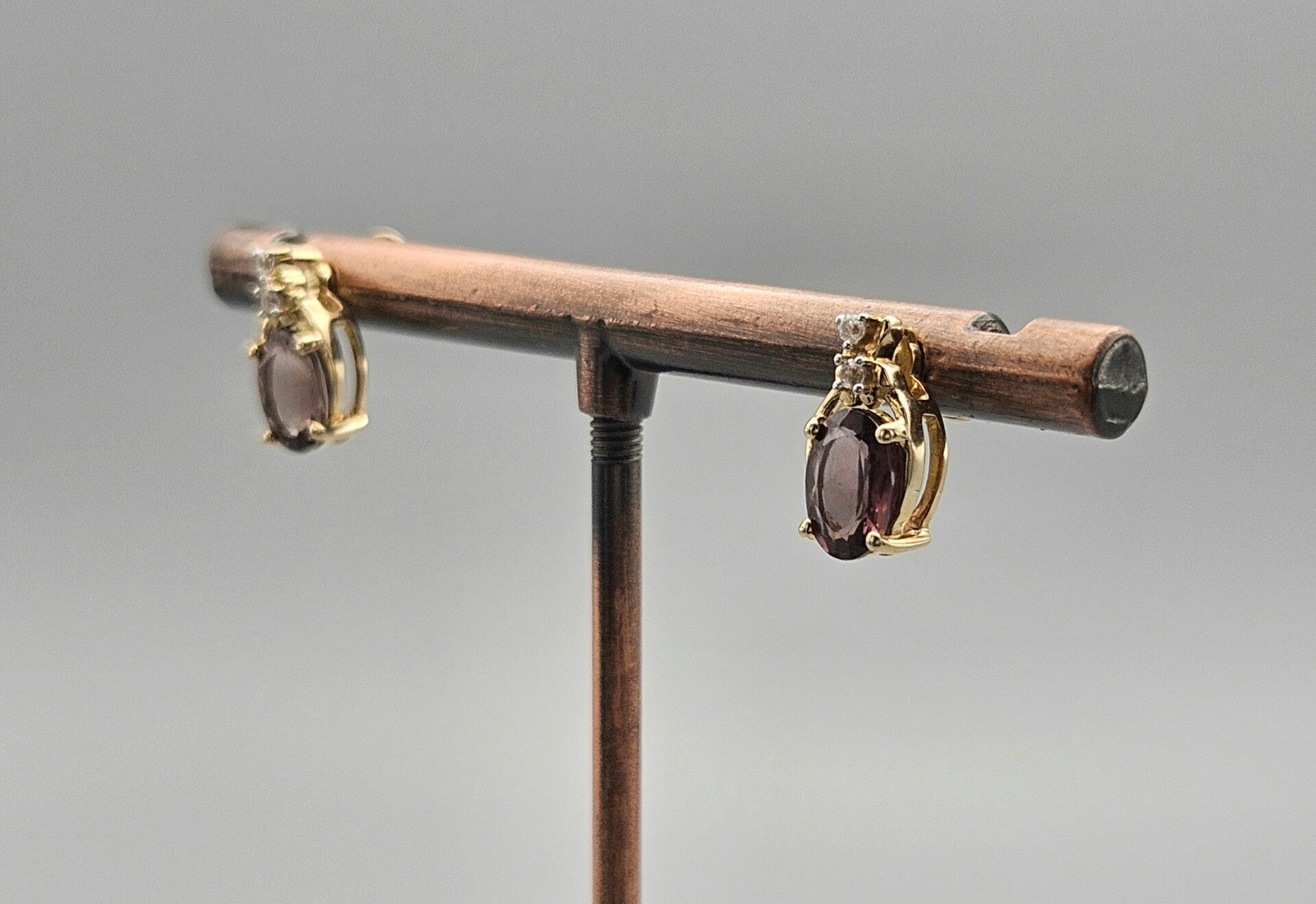 Vintage oorbellen met edelsteen topaas en diamant. 2024/328.
