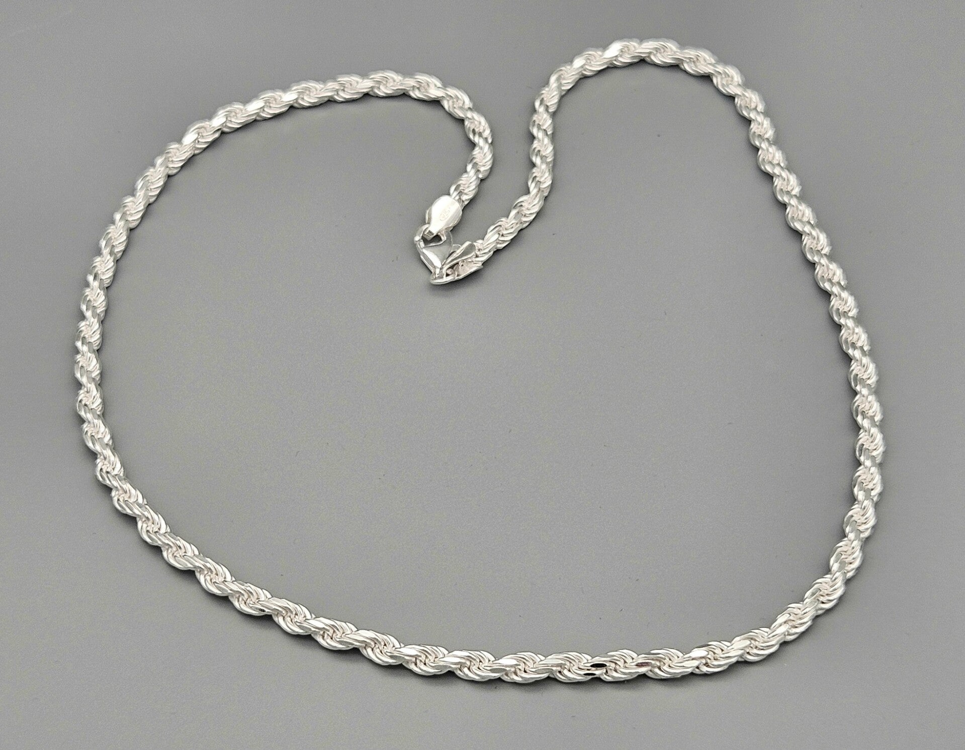 Wat een prachtige rope ketting! De schakels zijn prachtig gevormd en de ketting sluit door middel van een lobsterslot. De koord ketting is gemaakt van 925 zilver.