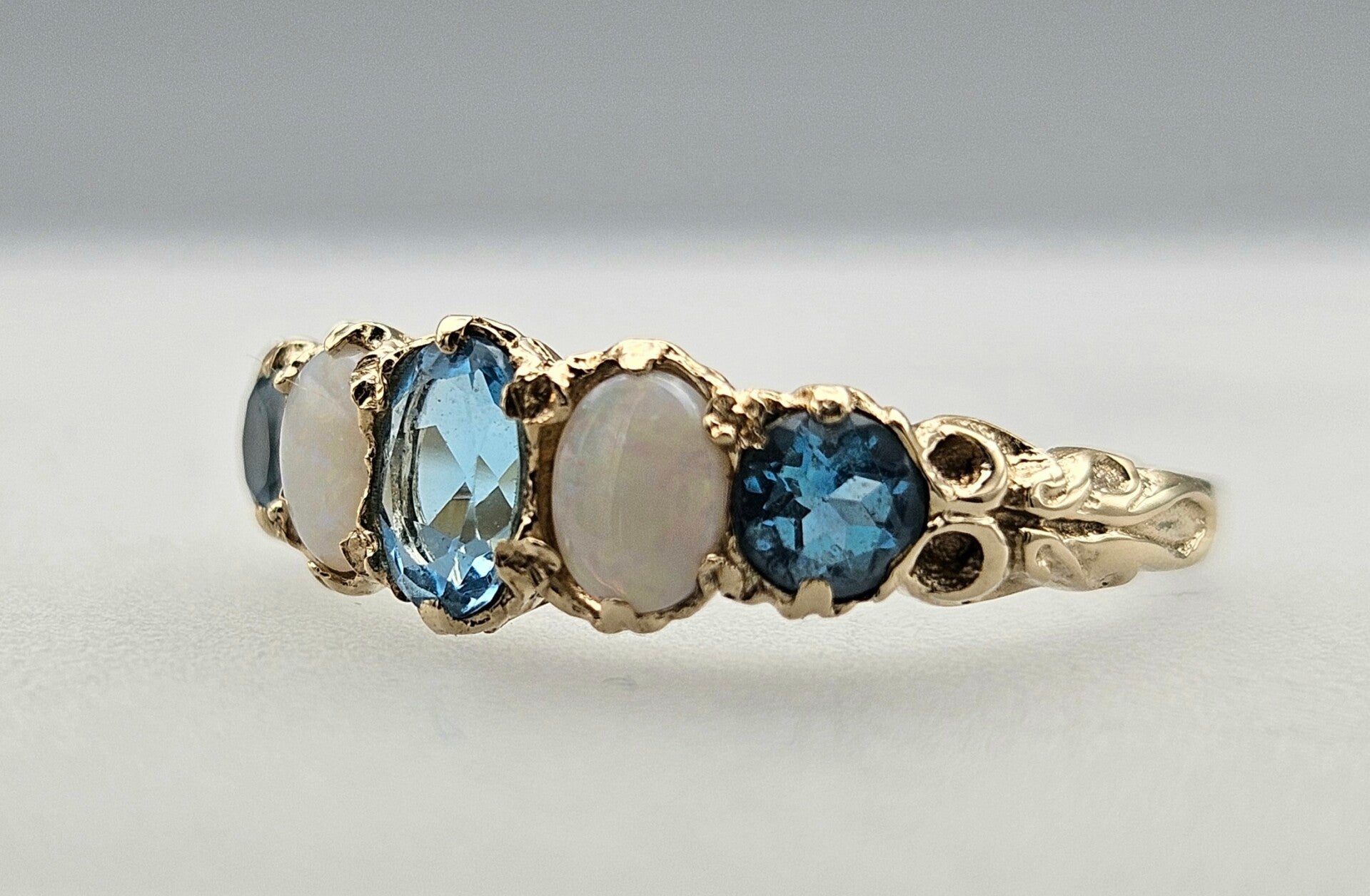 Vintage ring met edelsteen topaas en opaal. 2024/340