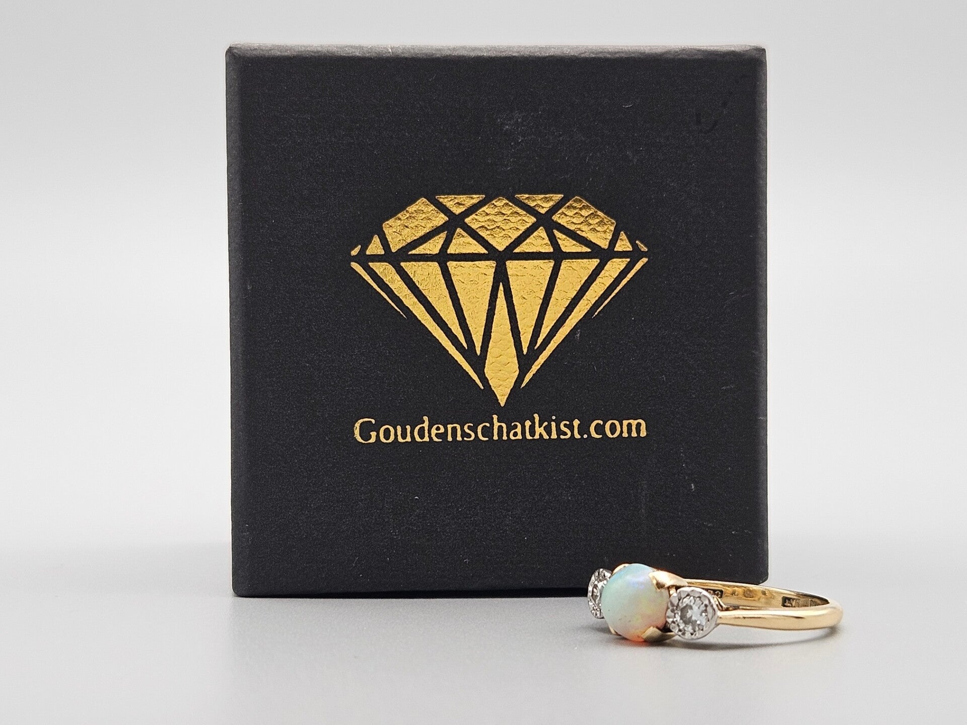 Vintage ring met edelsteen opaal en diamant. 2024/363
