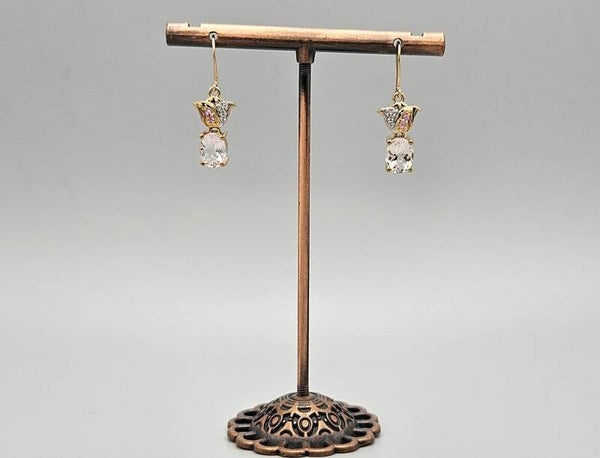 Vintage oorbellen met edelsteen morganiet, roze saffier en diamant. 2024/391.