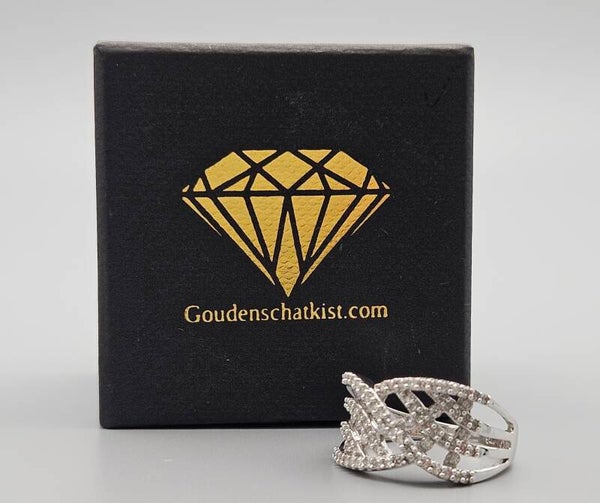 Een absolute vintage eye-catcher en zeer exclusief item! Deze witgouden ring met diamanten is bijzonder door zijn vorm en de vele diamanten, die een gewicht van 1.00 ct hebben. De ring is gemaakt van 14 karaat witgoud.