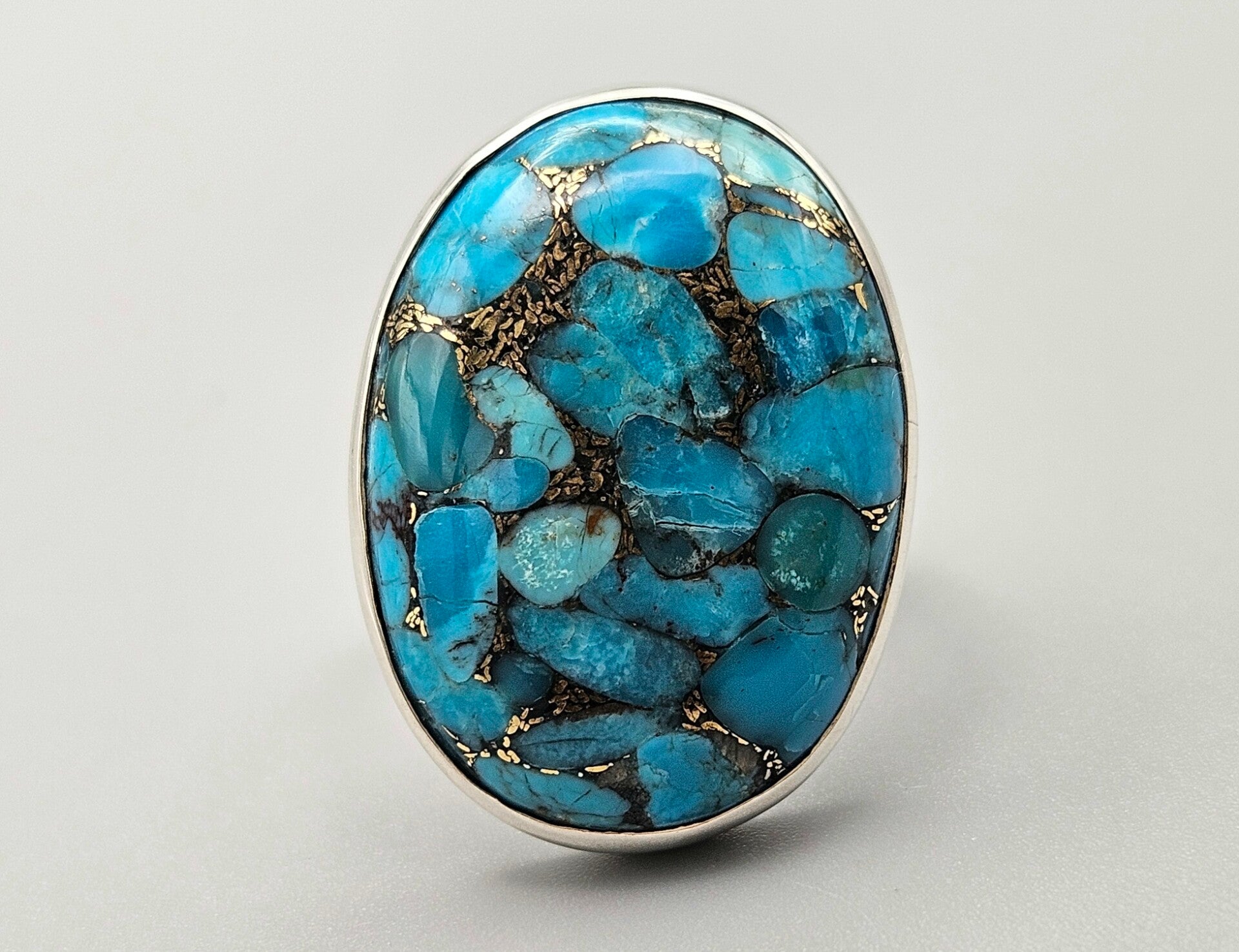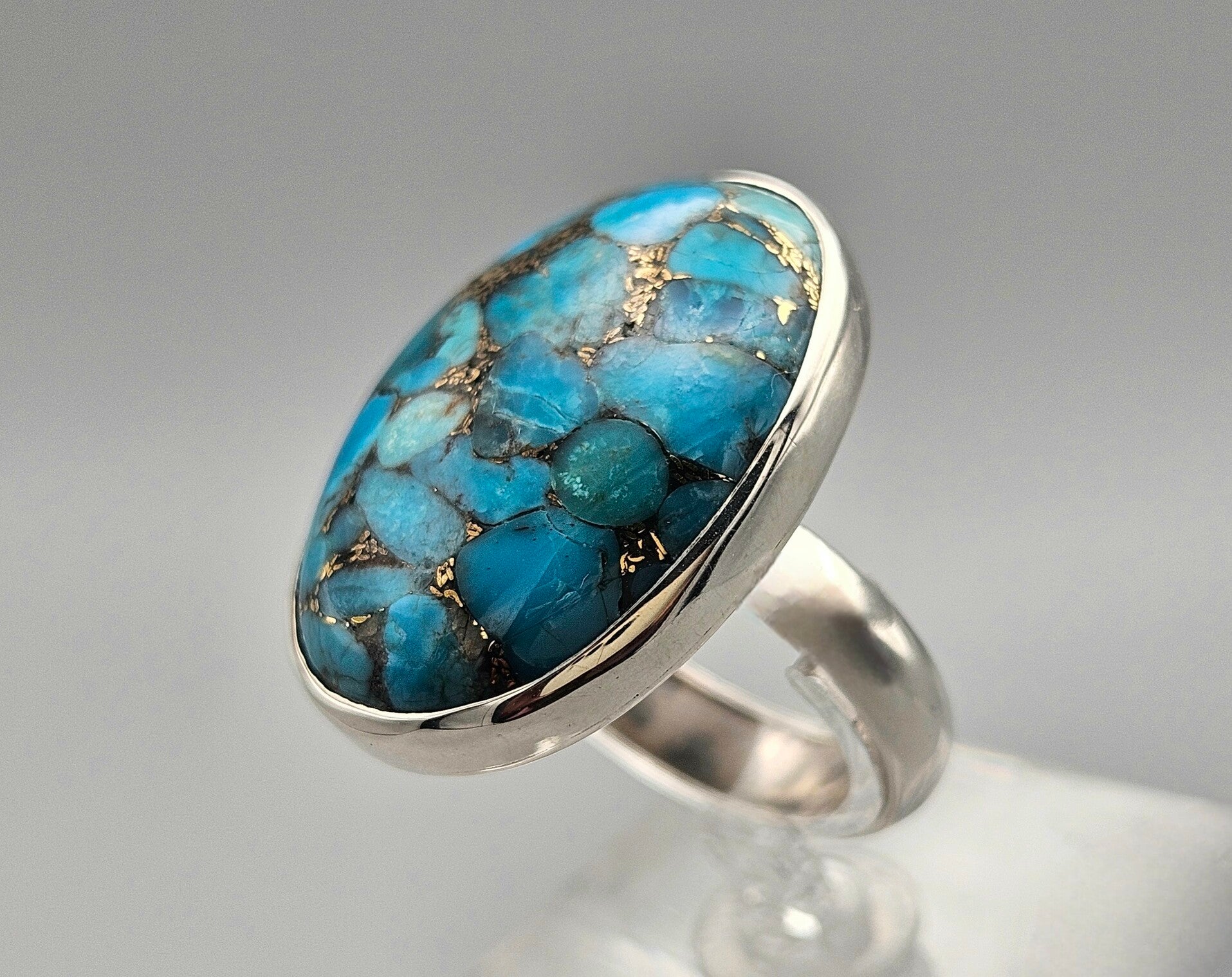 Zilveren ring met edelsteen koper turkooise. 2024/Z132