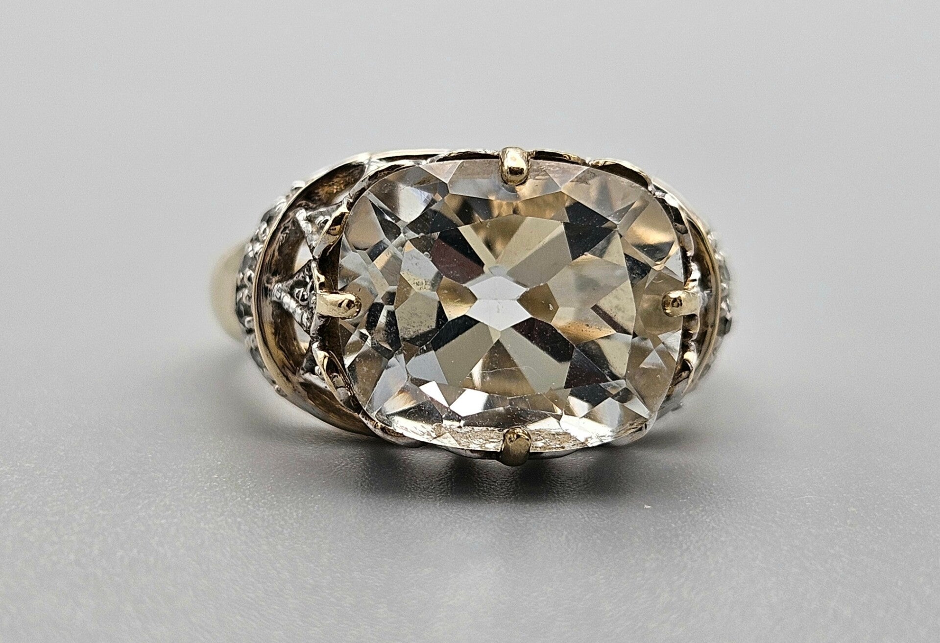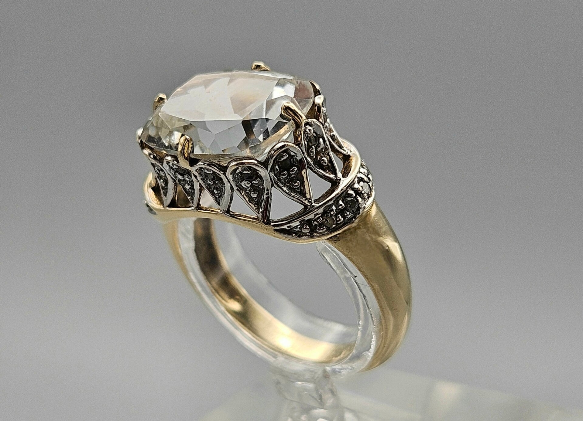 Vintage ring met edelsteen aquamarijn en diamant. 2024/458.