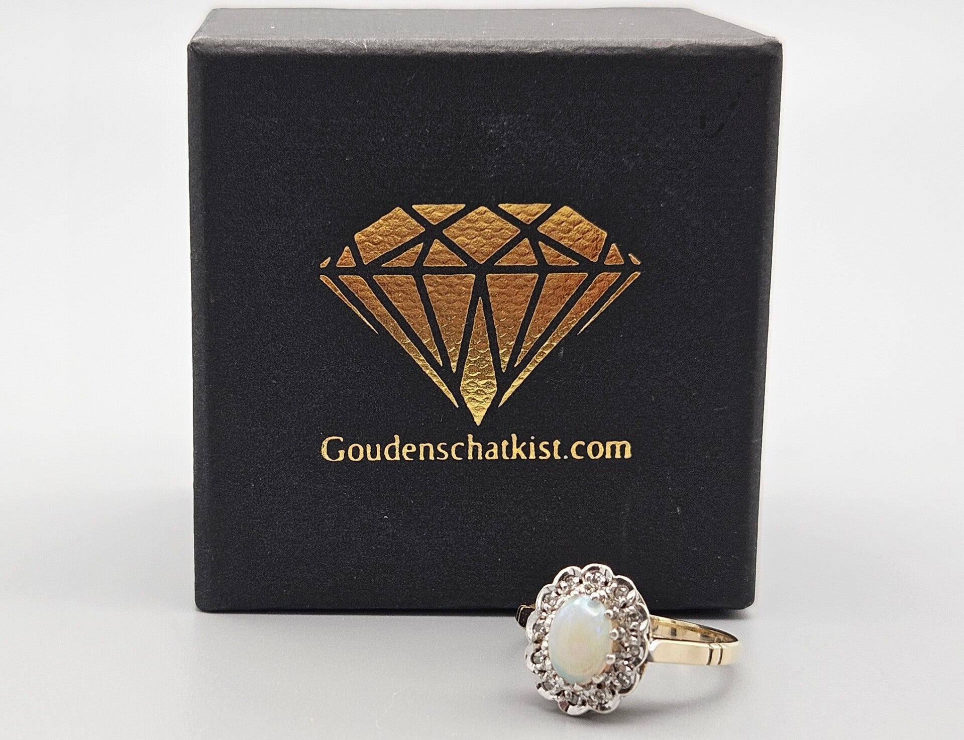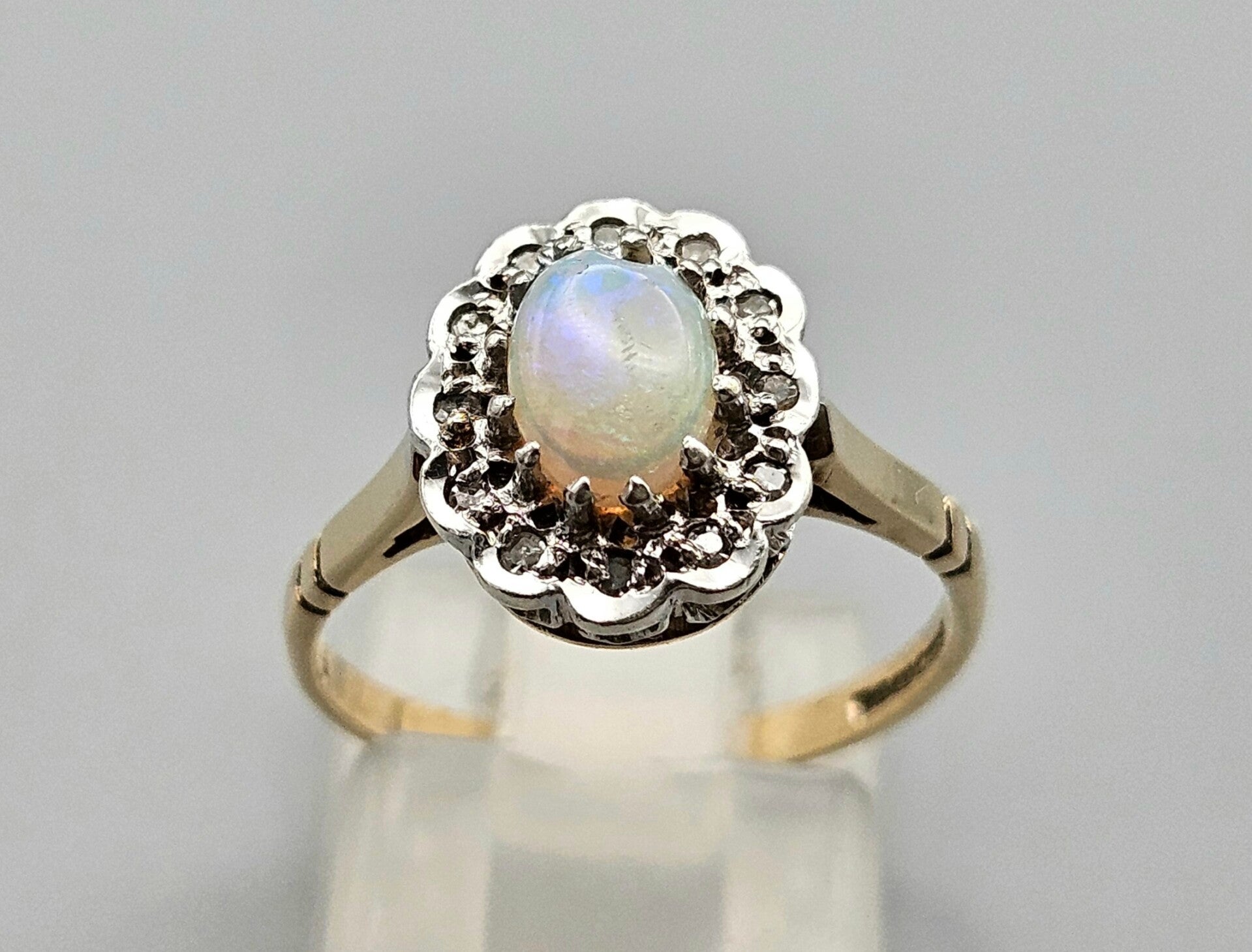 Vintage ring met edelsteen opaal en diamant. 2024/459.