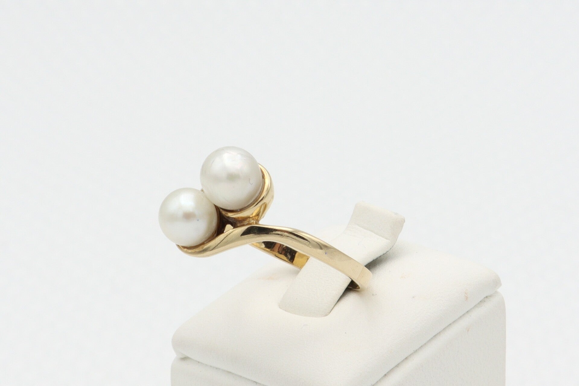 Gouden vintage ring met 2x parel. Maat: 18.2. 2020/392.