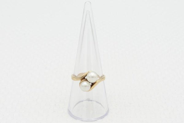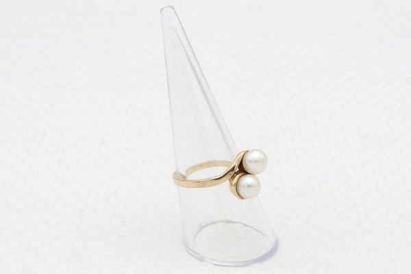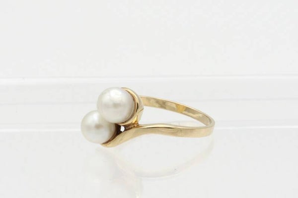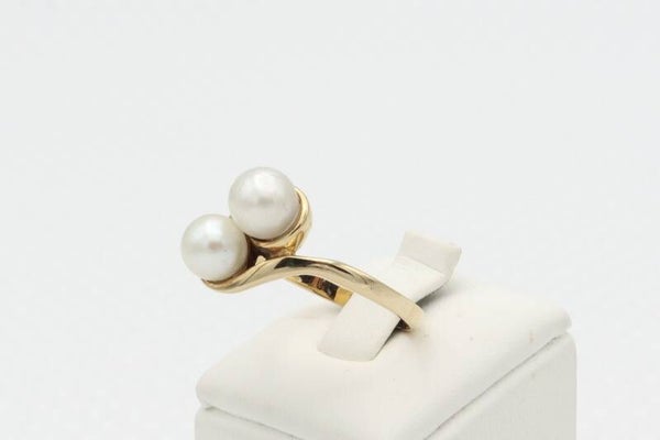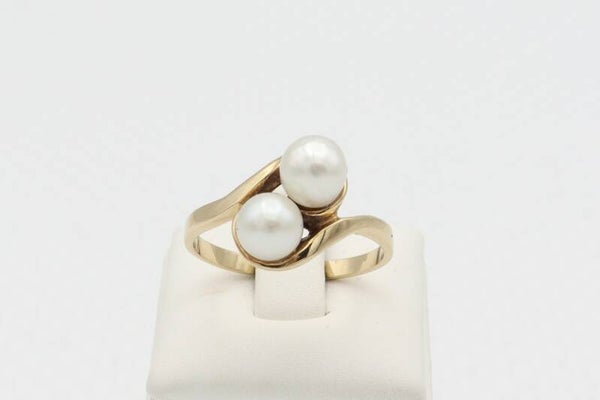 Gouden vintage ring met 2x parel. Maat: 18.2. 2020/392.