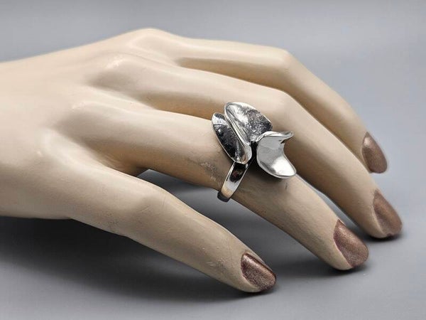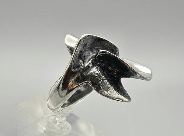 Modernistische zilveren robuuste bloem ring. 2024/Z147.