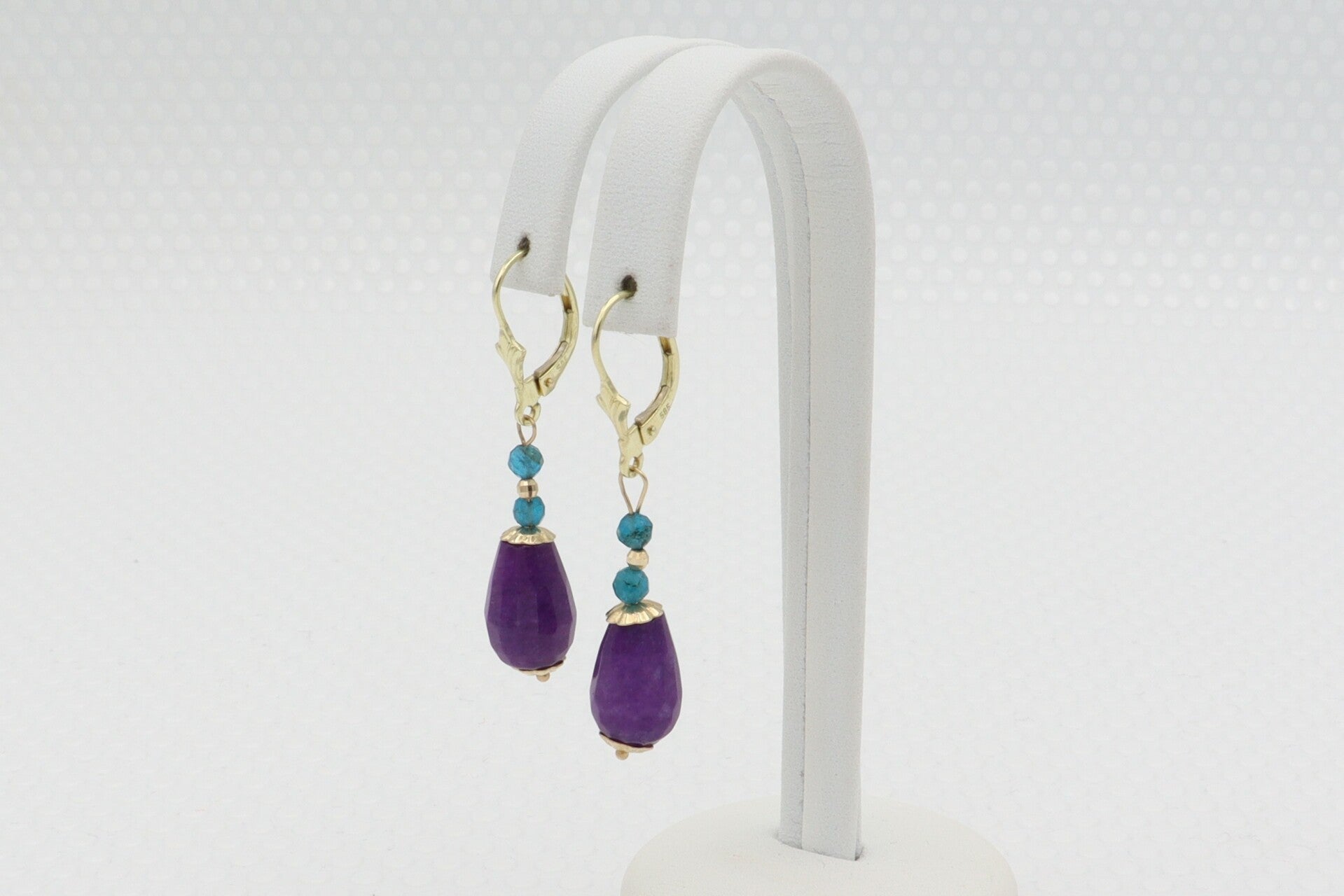 14 Karaat. Gouden vintage oorbellen met paarse jade en apetiet. Nr: 2020/399.