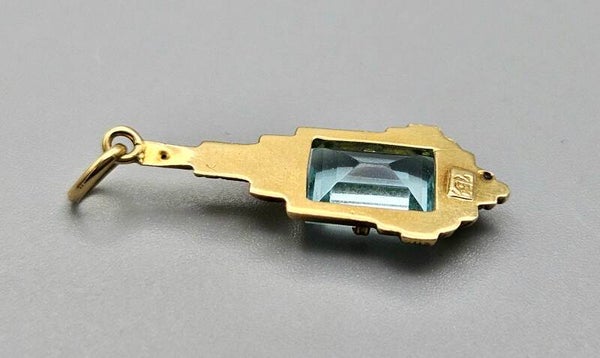 Gouden Art Deco hanger met aquamarijn. 2024/525.