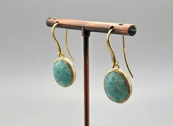 Gold vermeil op zilver oorbellen met edelstenen amazoniet. 2024/538.