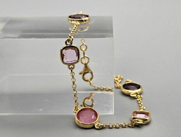 Vermeil op zilver armband met edelstenen amethist en rozekwarts. 2024/648.