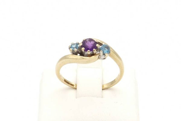 Vintage ring met aquamarijn en amethist. Maat: 16. 2020/465.