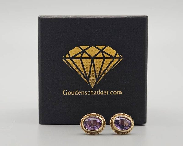 Deze vintage oorbellen zijn een hele stijlvolle toevoeging aan iedere sieraden collectie. Ze zijn gemaakt van 9 karaat. De amethist is facet geslepen.
