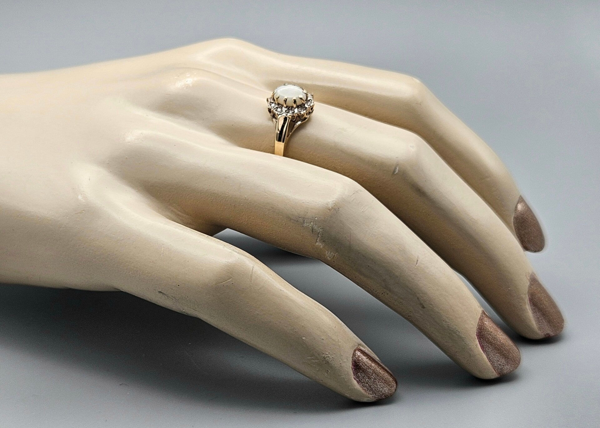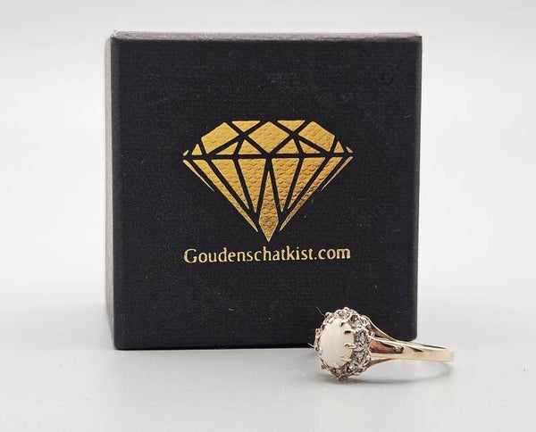 Vintage ring met edelsteen opaal en diamant. 2024/679.