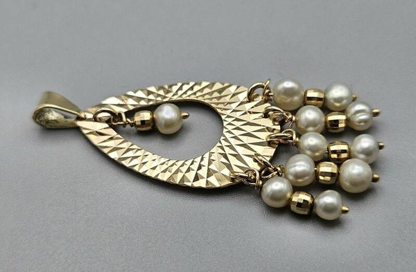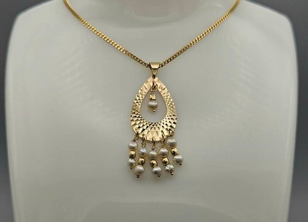 Door de vele parels, is dit een opvallende kettinghanger. De hanger is gemaakt van 14 karaat geelgoud. Het goud om de parel heeft een prachtige bewerking.Deze gouden vintage hanger geeft je door zijn gave vorm helemaal ” retro vibes ”.