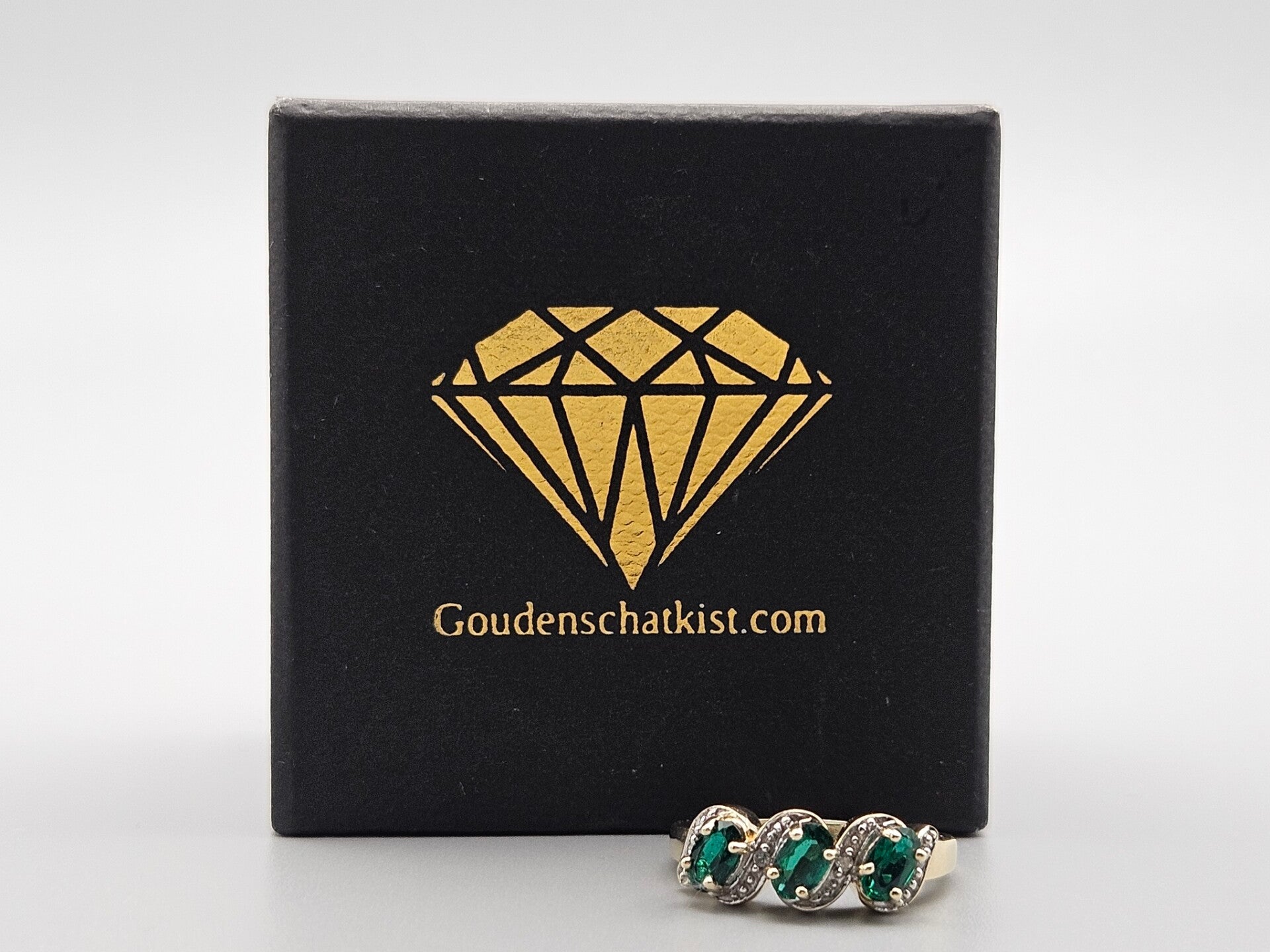 Droom weg met deze prachtige vintage ring! De schoonheid van deze ring is moeilijk onder woorden te brengen. Hij is gemaakt van 9 karaat en is gezet met diamanten en een edelsteen smaragd.
