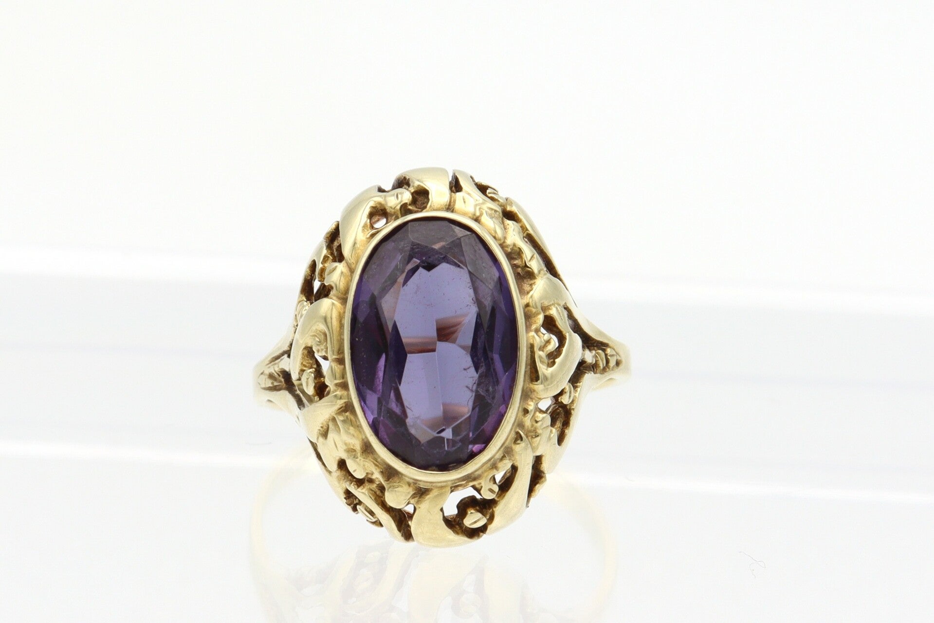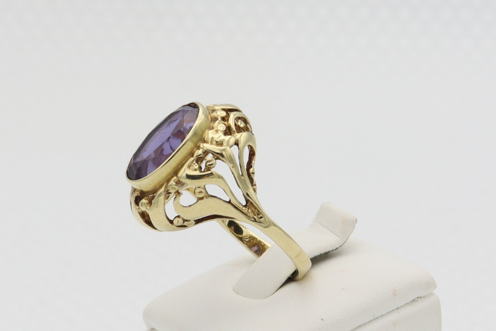 14 Karaat. Gouden vintage ring met amethist. Maat: 17.25. Nr: 2020/490.