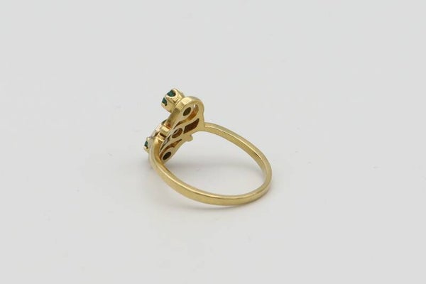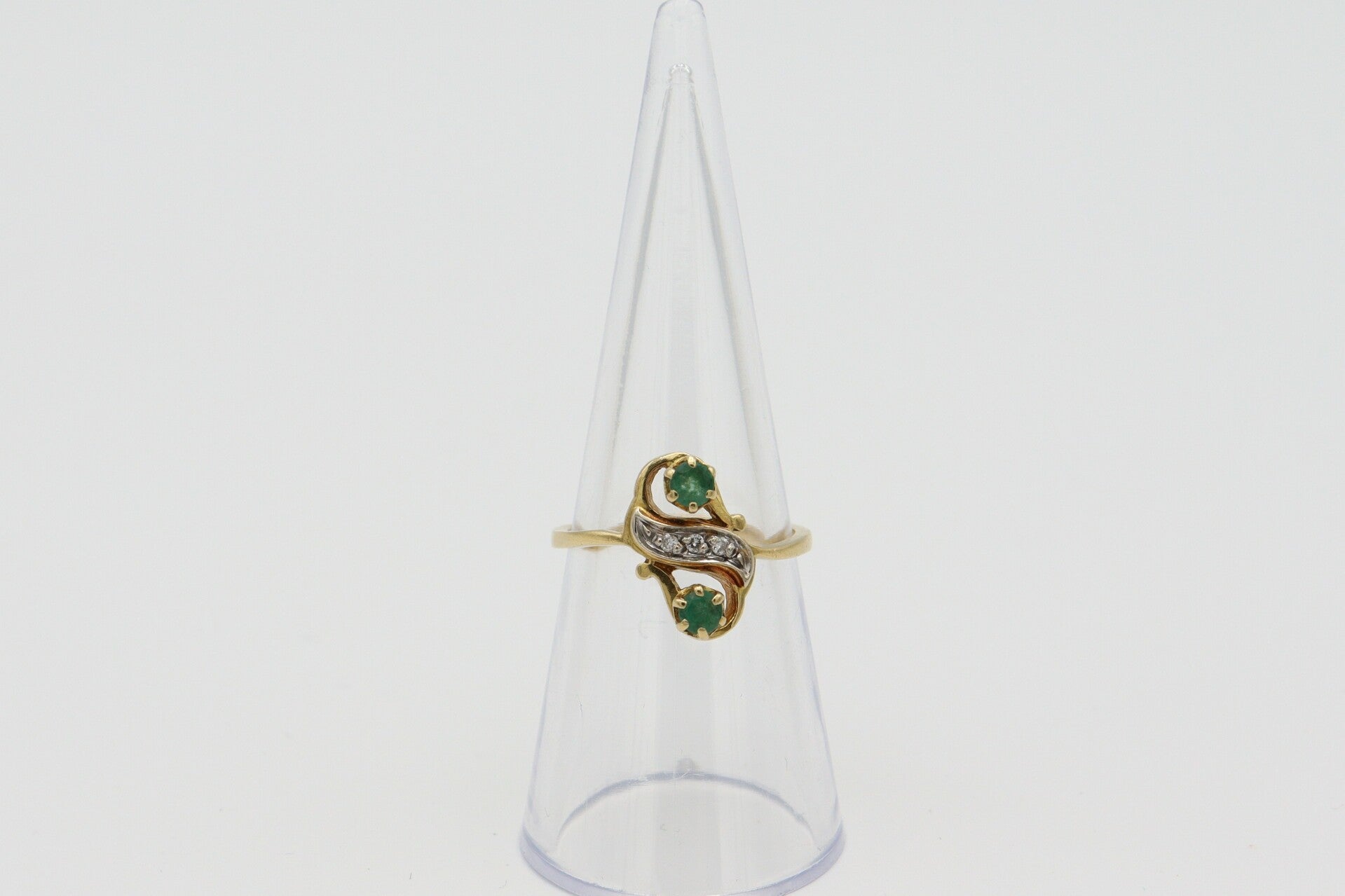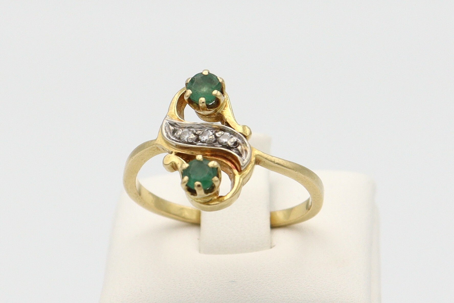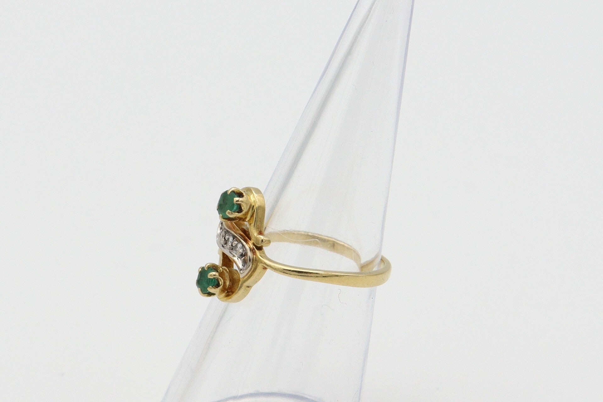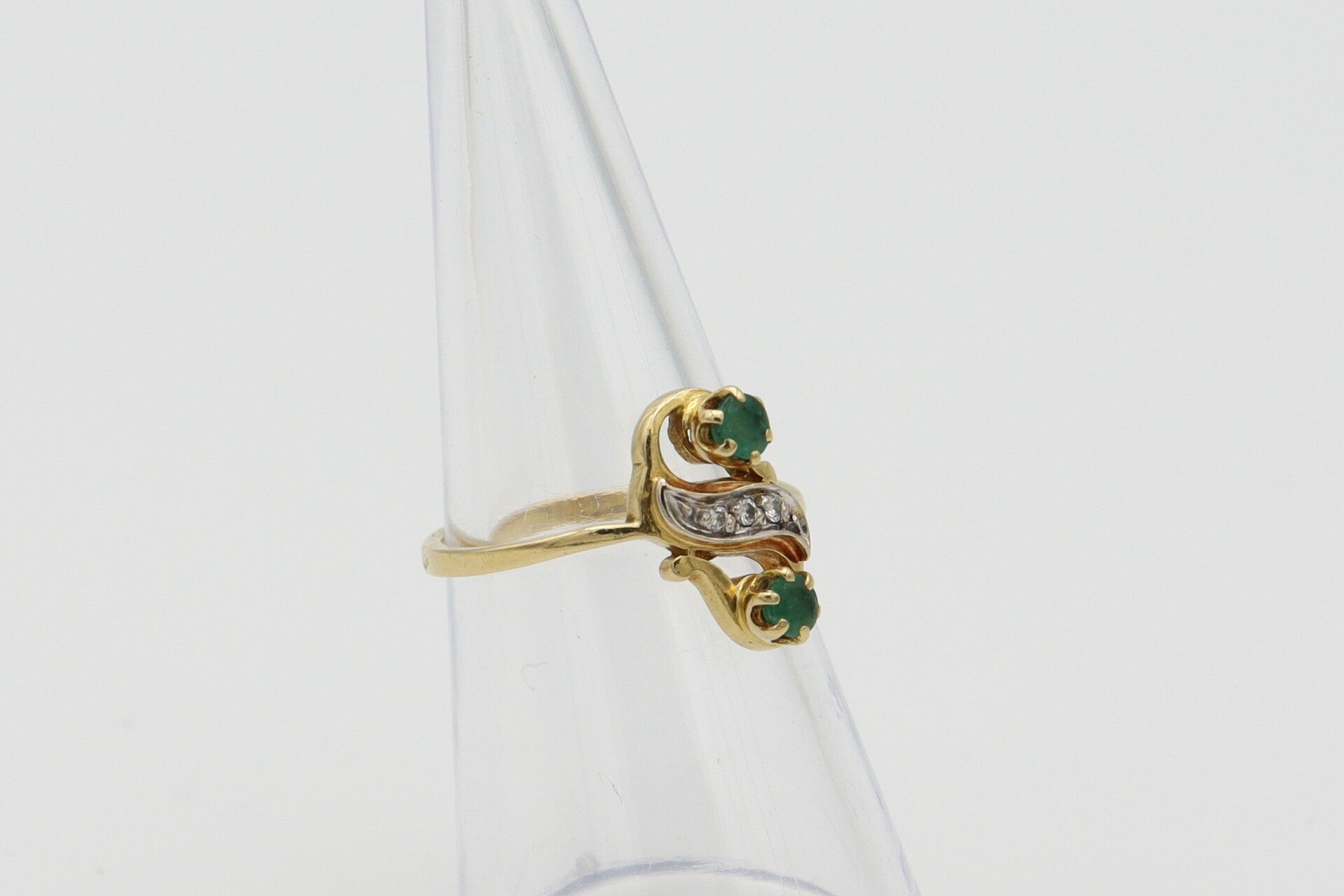 Gouden vintage ring met smaragd en diamanten.Maat: 17. Nr: 2020/500.