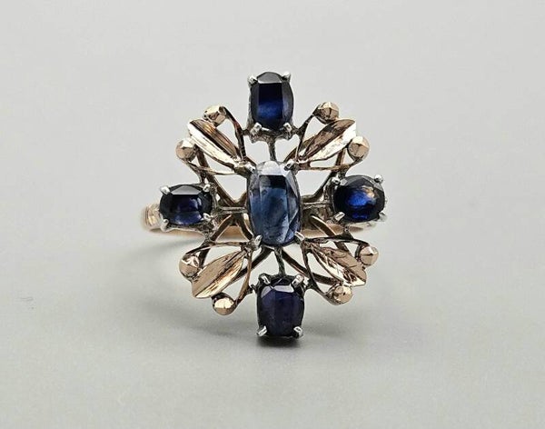 Gouden antieke ring met edelsteen saffier. 2025/60.