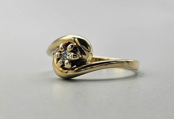 Een absolute vintage eye-catcher en zeer mooi item! Deze vintage ring met diamanten is bijzonder door zijn vorm en de vele diamanten, die een gewicht van 0.10 ct hebben. De ring is gemaakt van 14 karaat goud. In het echt is de diamant heel mooi.