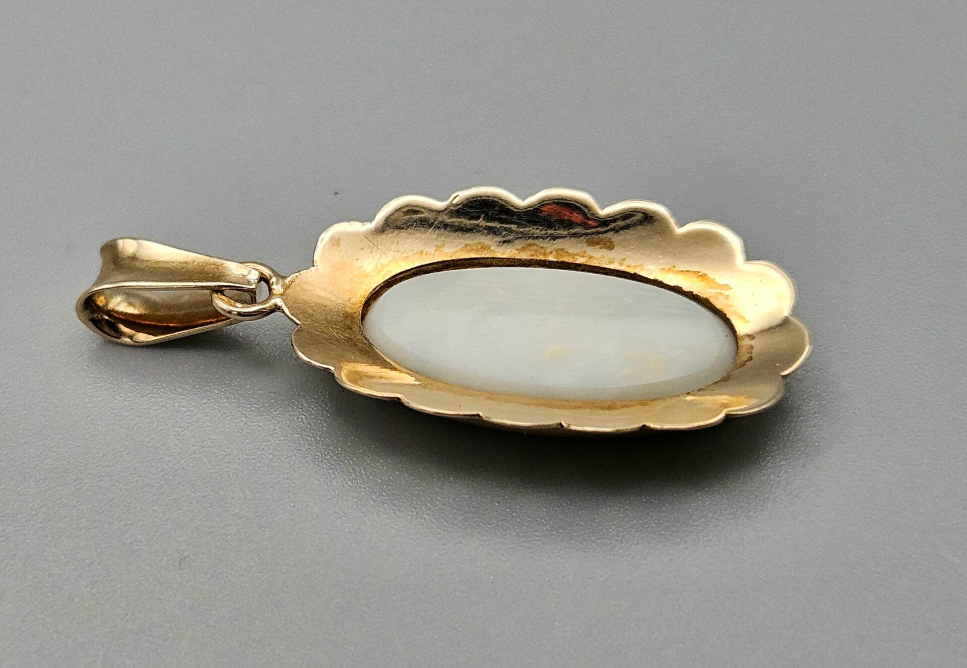 Een prachtige opvallende verschijning! Bij deze hanger komt alles perfect samen. De gouden hanger is gemaakt van 14 karaat goud en heeft die bijzonder mooie uitstraling, wat zo kenmerkend is van vintage hangers. De opaal edelsteen is er eentje om bij weg te dromen, want de kleuren zijn zó mooi. Zie ons filmpje op instagram.
