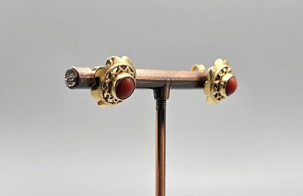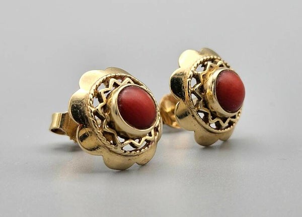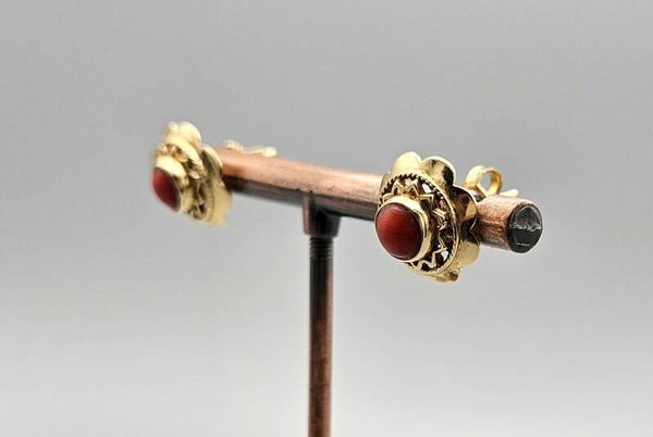 Antieke gouden oorbellen met edelsteen bloedkoraal. 2025/87