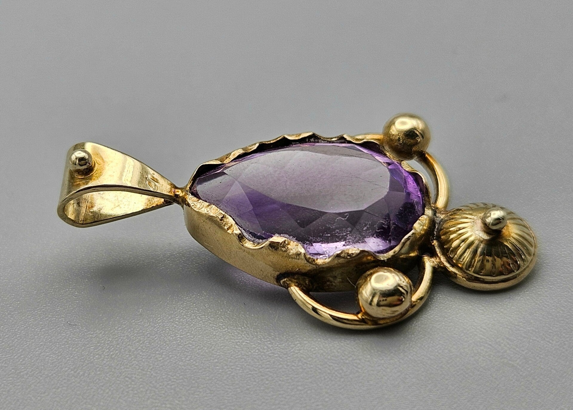 Gouden antieke hanger met amethist. 2025/112.