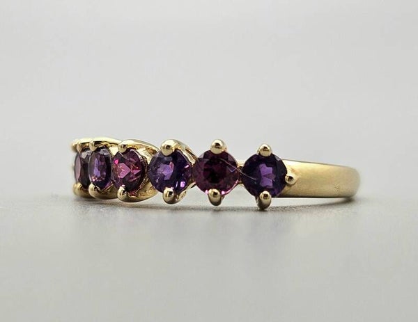 Deze prachtige vintage dames ring is gemaakt van 9 karaat. De ring is gezet met amethist en toermalijn. De warme gloed van de edelstenen geeft deze ring charme. Een op en top unieke vintage design ring.
