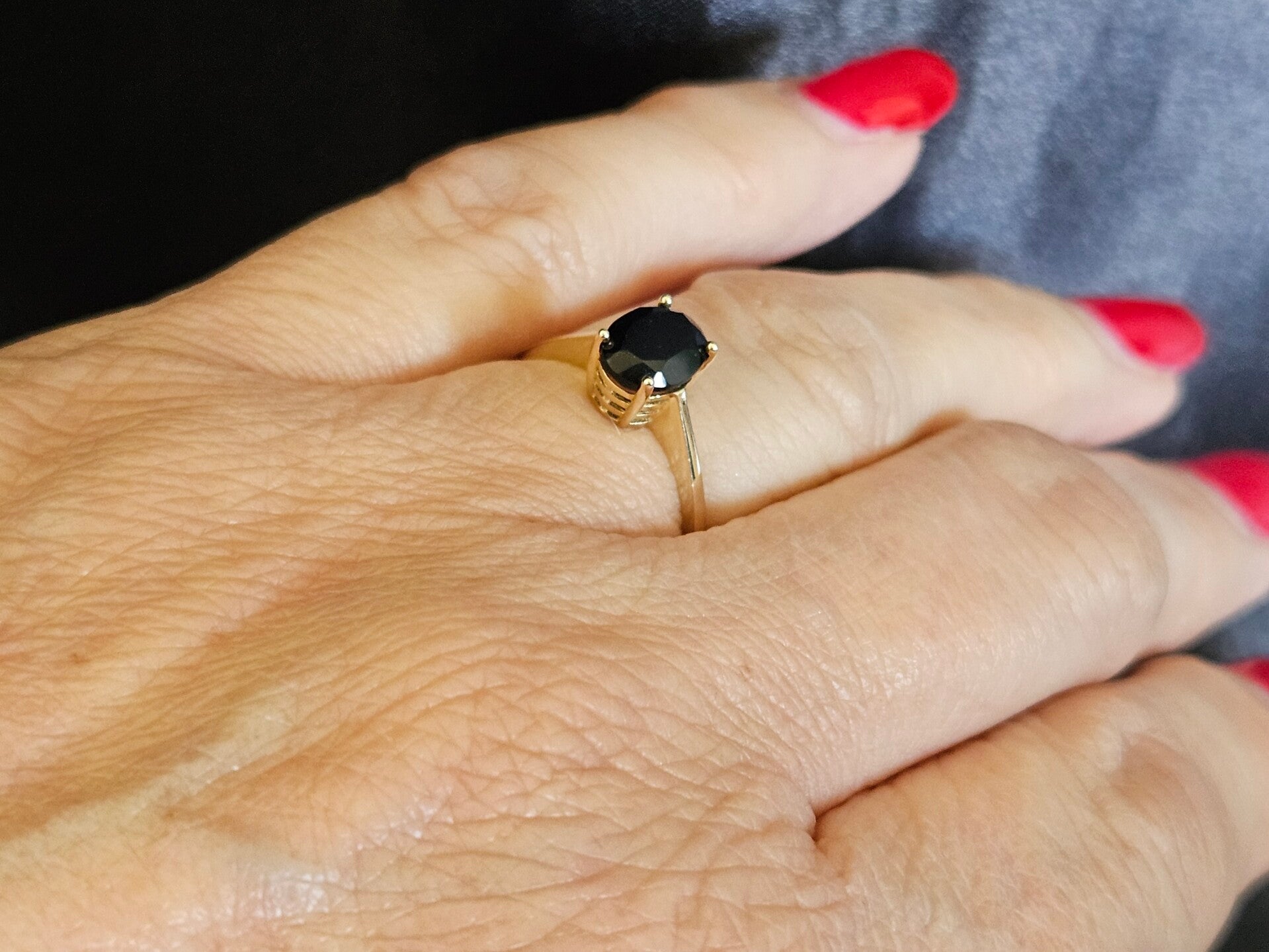 Deze prachtige vintage ring is een echte statement ring. Hij is gemaakt van 14 karaat geel goud, met in het middelpunt prachtige mooie edelsteen onyx die alle aandacht trekt.