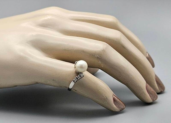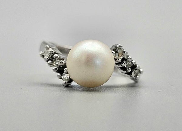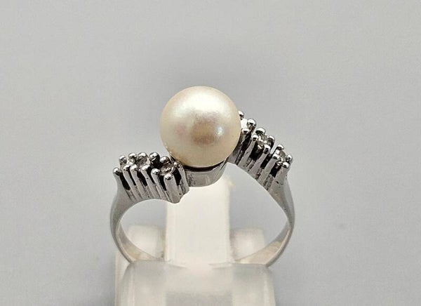 Vintage ring met parel en diamant. 2025/186.