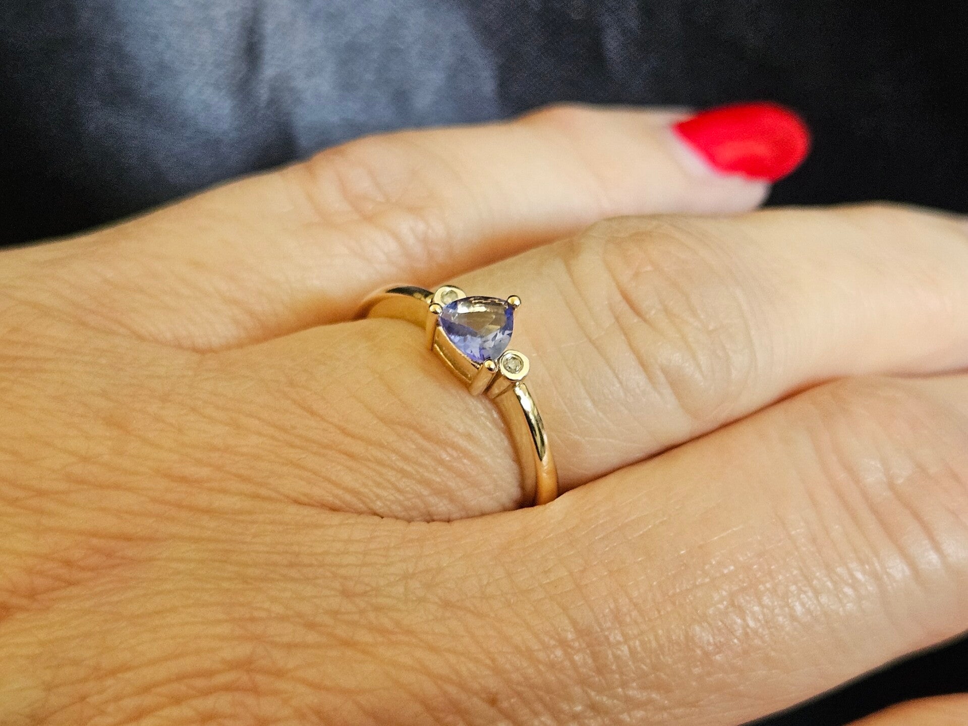 Vintage ring met edelsteen tanzaniet en diamant. 2025/190.