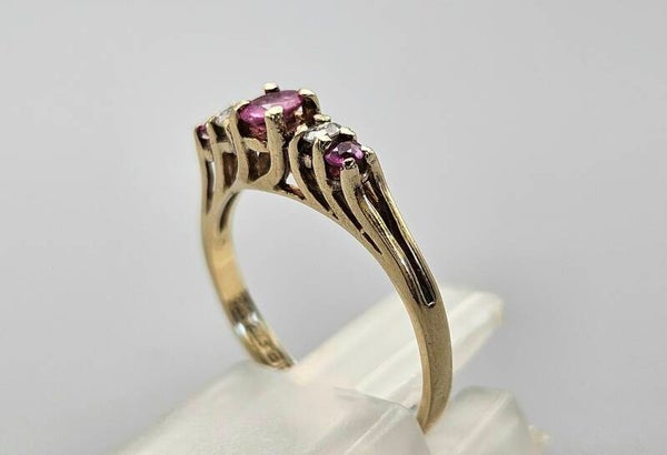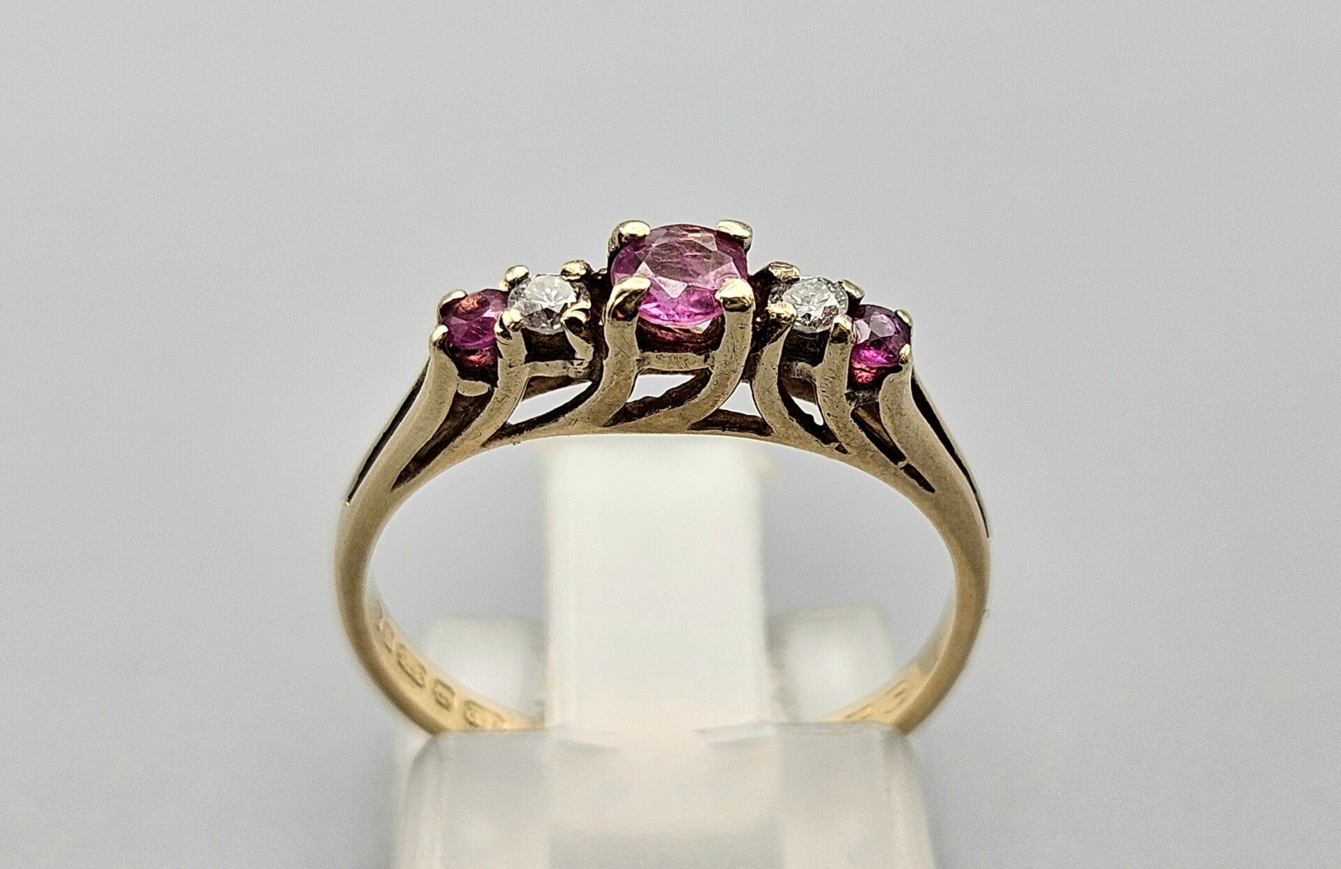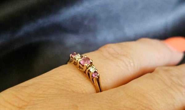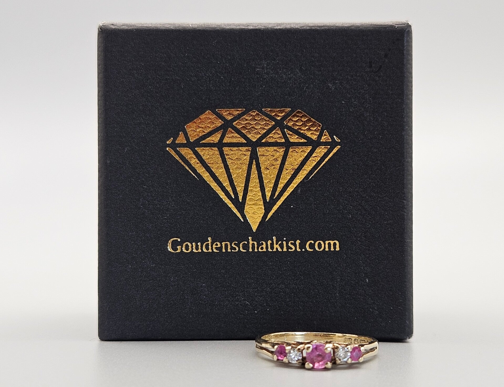 Vintage ring met edelstenen robijn en diamant. 2025/262.