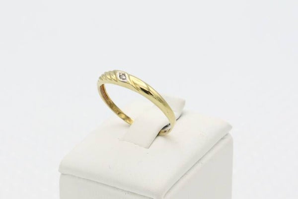14 Karaats. Gouden vintage ring met diamant (Ca: 0.005 ct). Maat: 17. Nr: 2020/563.