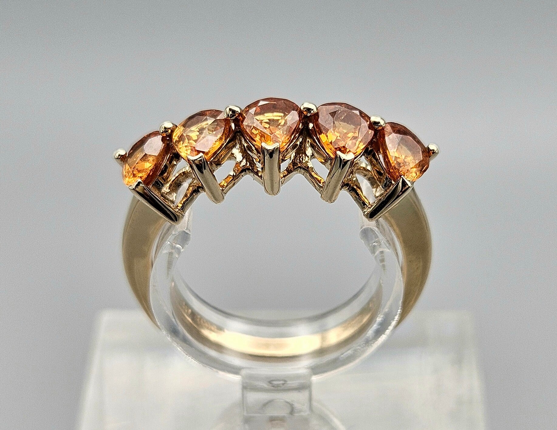 Deze vintage ring is een echte statement ring. Hij is gemaakt van geel goud, met in het middelpunt prachtige mooie edelstenen citrien die alle aandacht trekt.