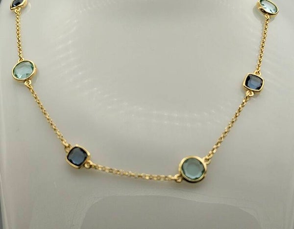 Vermeil op zilver ketting met edelsteen blauwe topaas. 2025/289.