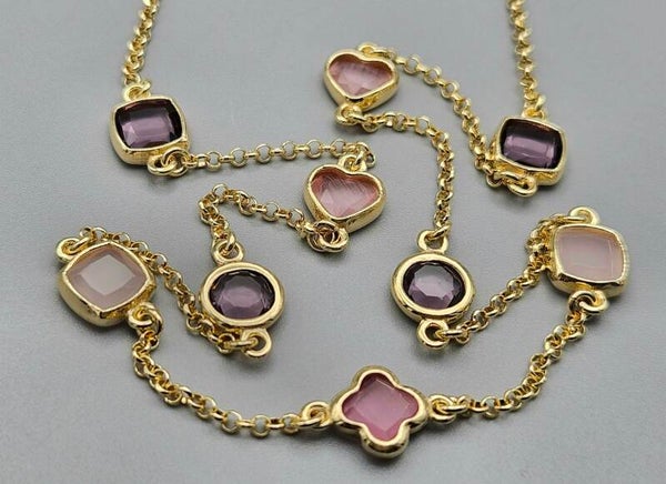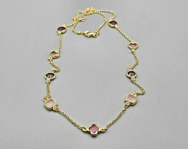 Ingezet met prachtige echte edelstenen amethist en rozekwarts is deze ketting elke dag weer een plezier om naar te kijken. De kleur van de edelstenen is paars en roze, mooi voor zowel een feest als naar het werk.