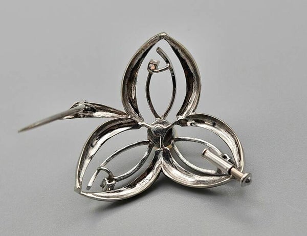 Deze prachtige broche is gemaakt van 14 karaat witgoud en gezet met briljant geslepen diamanten en parel. Een uniek sieraad, die prachtig gedetailleerd is.
