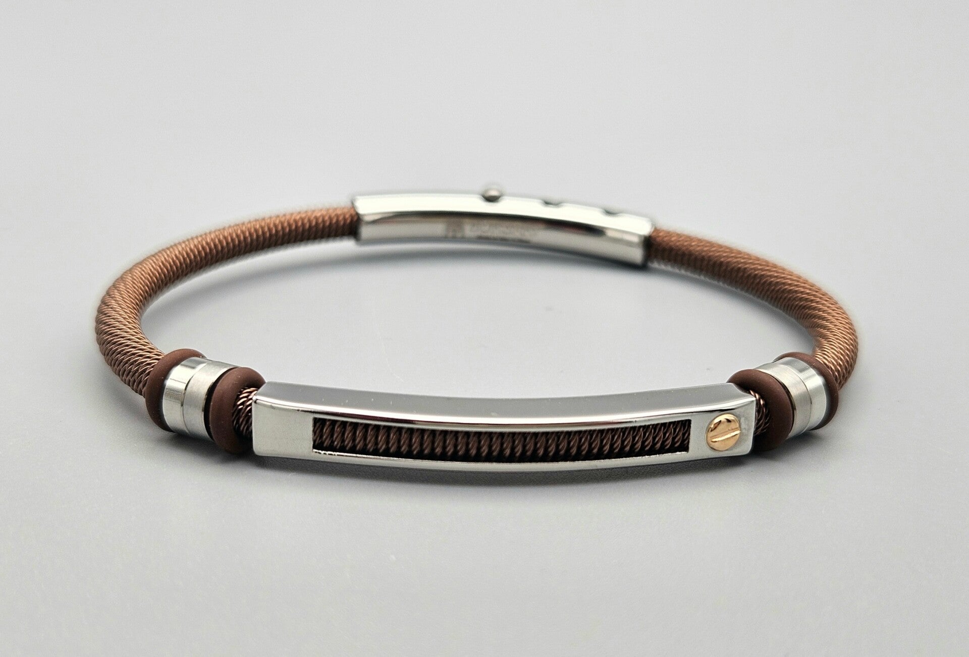 Borsari armband brown met 18 karaat rosé gouden schroef. B04.