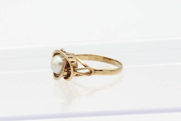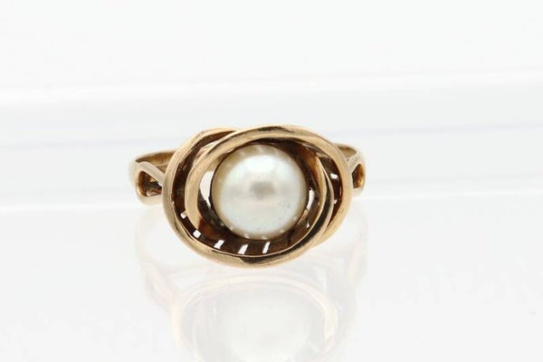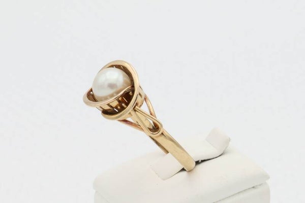 Gouden antieke ring met parel. Maat: 18.5. Nr: 2020/573.
