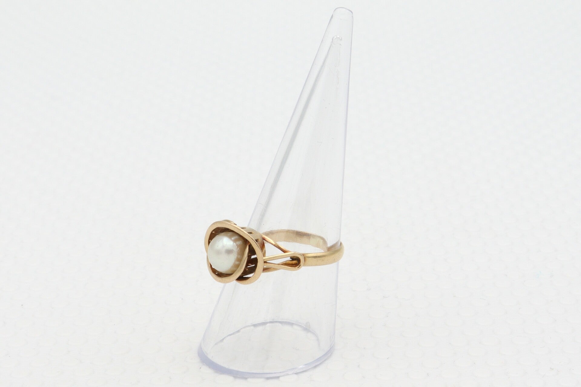 Gouden antieke ring met parel. Maat: 18.5. Nr: 2020/573.