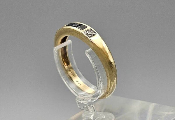 Vintage ring met edelsteen saffier en diamant. 2025/315.