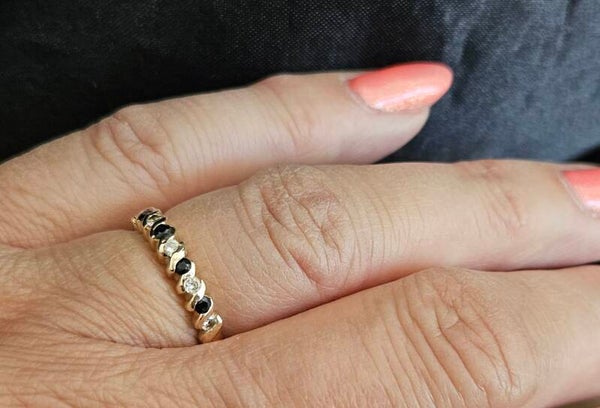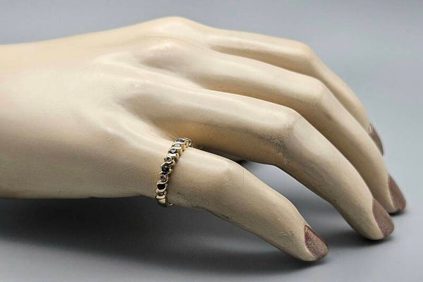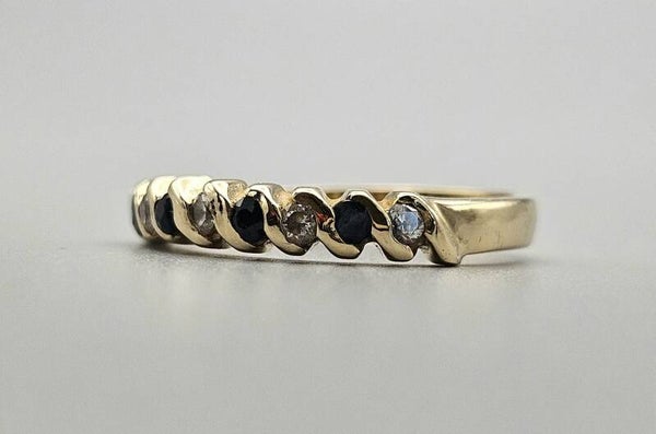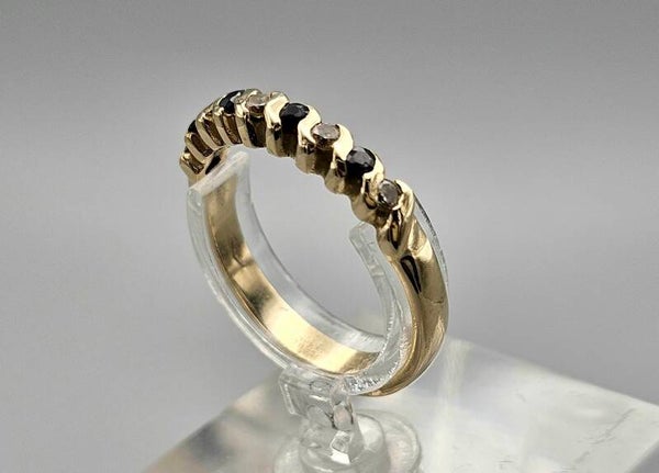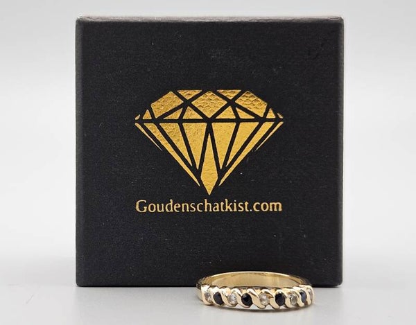 Vintage ring met edelsteen saffier en witte toermalijn. 2025/330.
