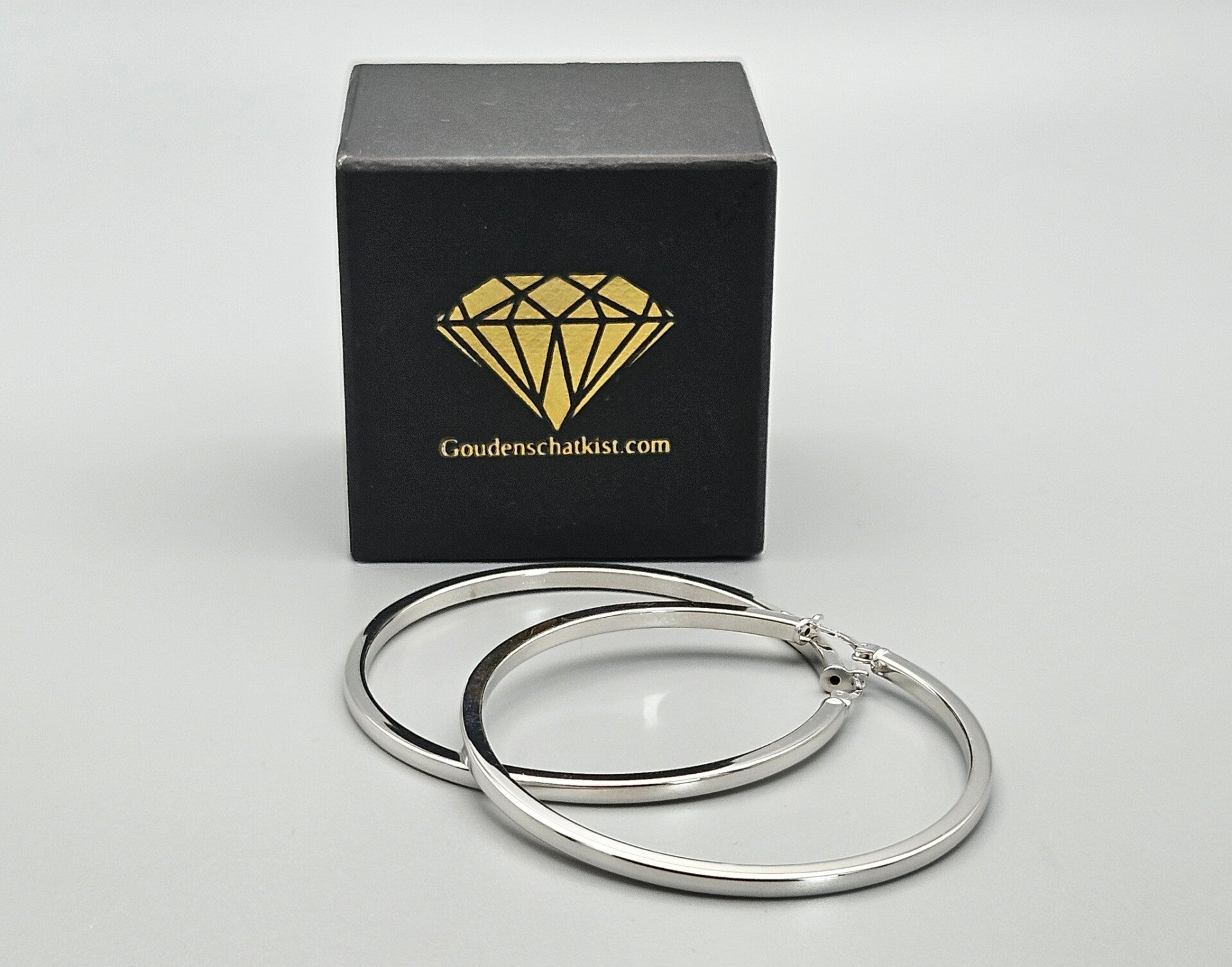 Zilveren gladde creolen vierkante buis gerhodineerd. 2025/382.