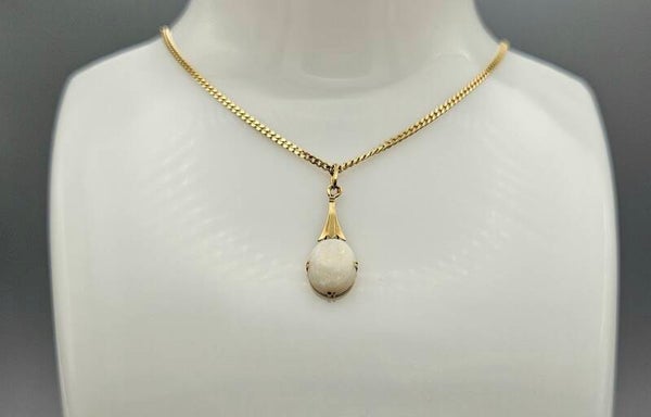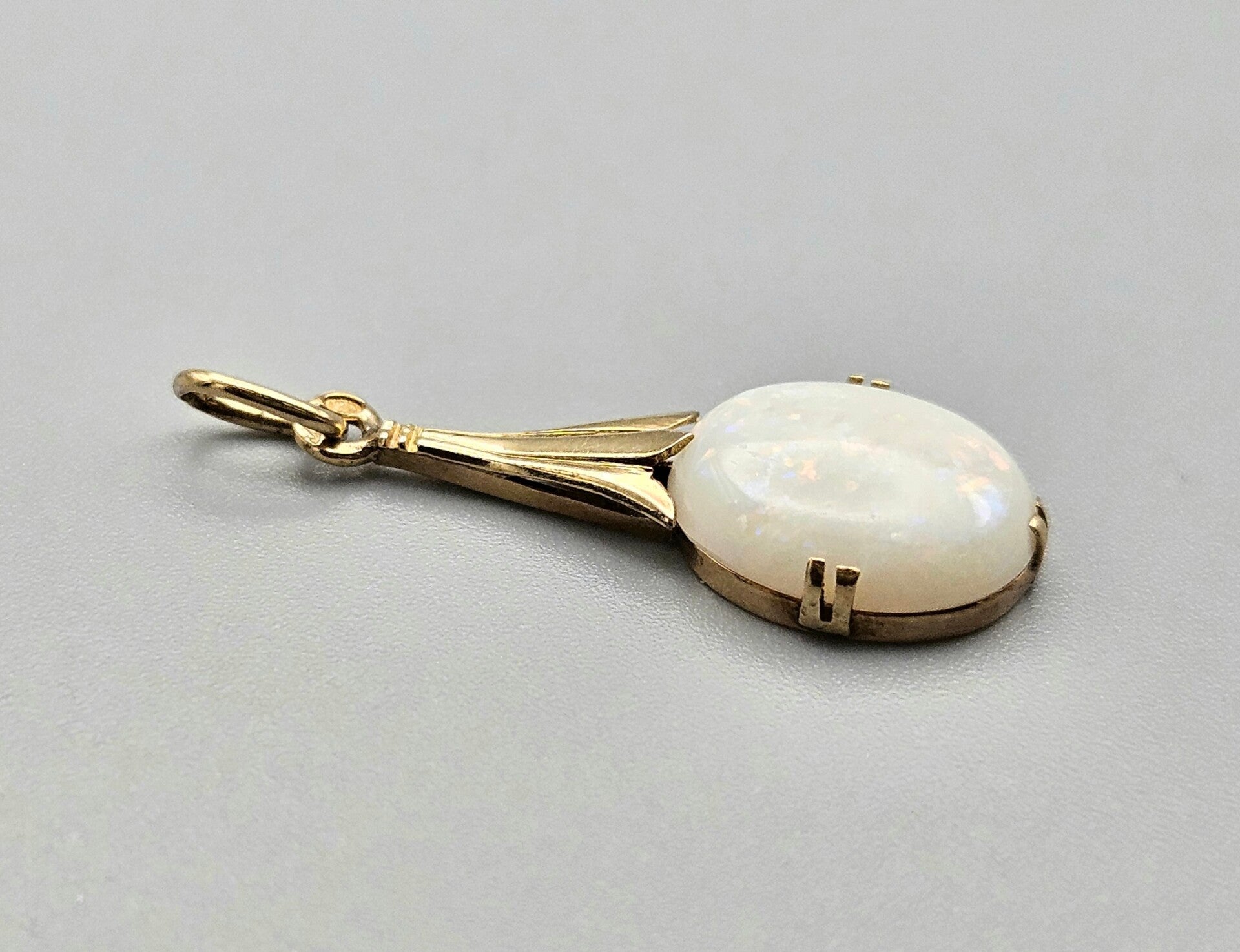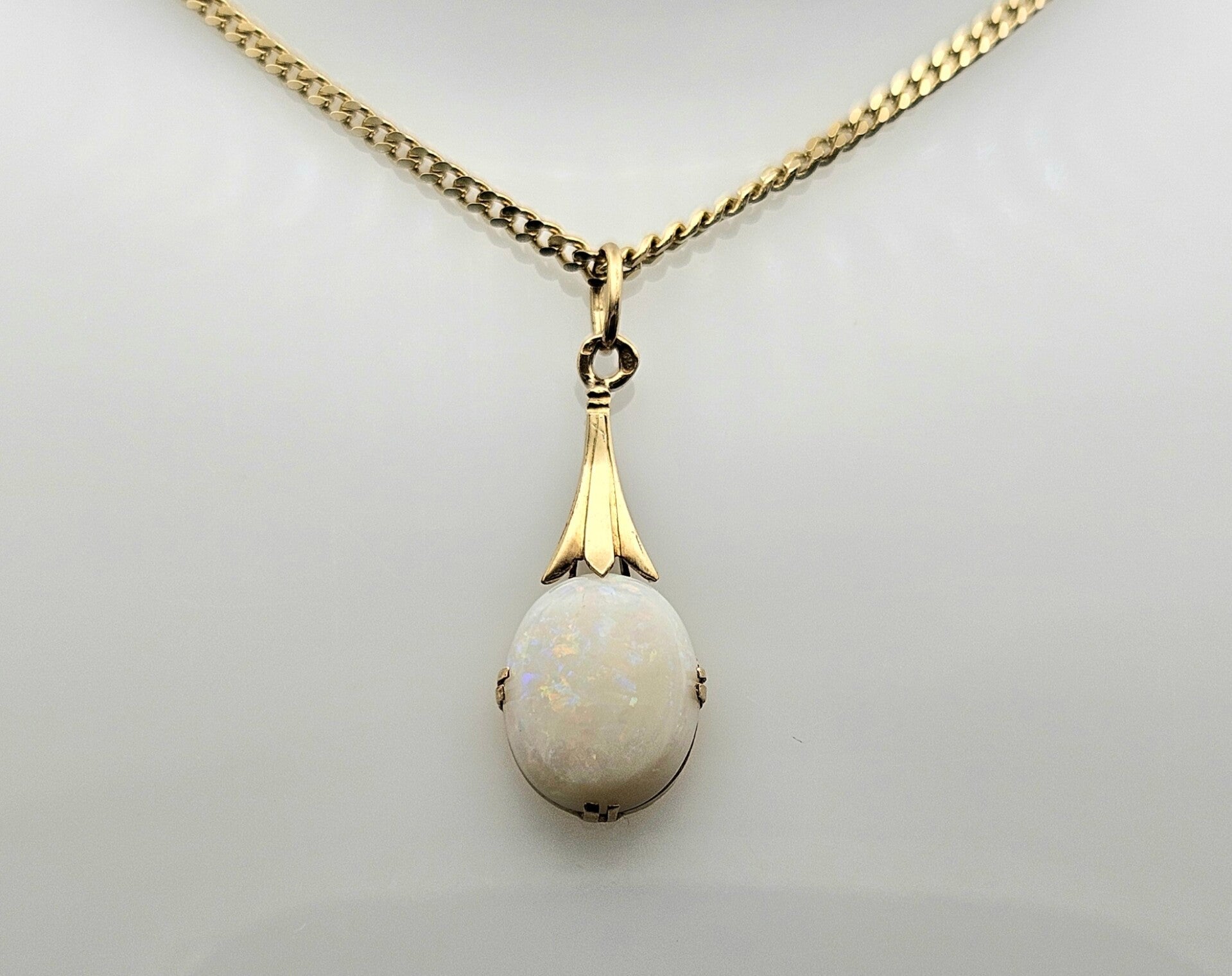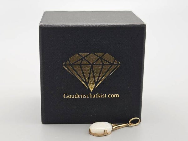 Een prachtige verschijning! Bij deze hanger komt alles perfect samen. De hanger is gemaakt van 14 karaat en heeft die bijzonder mooie uitstraling, wat zo kenmerkend is van vintage sieraden. De opaal edelsteen is er eentje om bij weg te dromen.