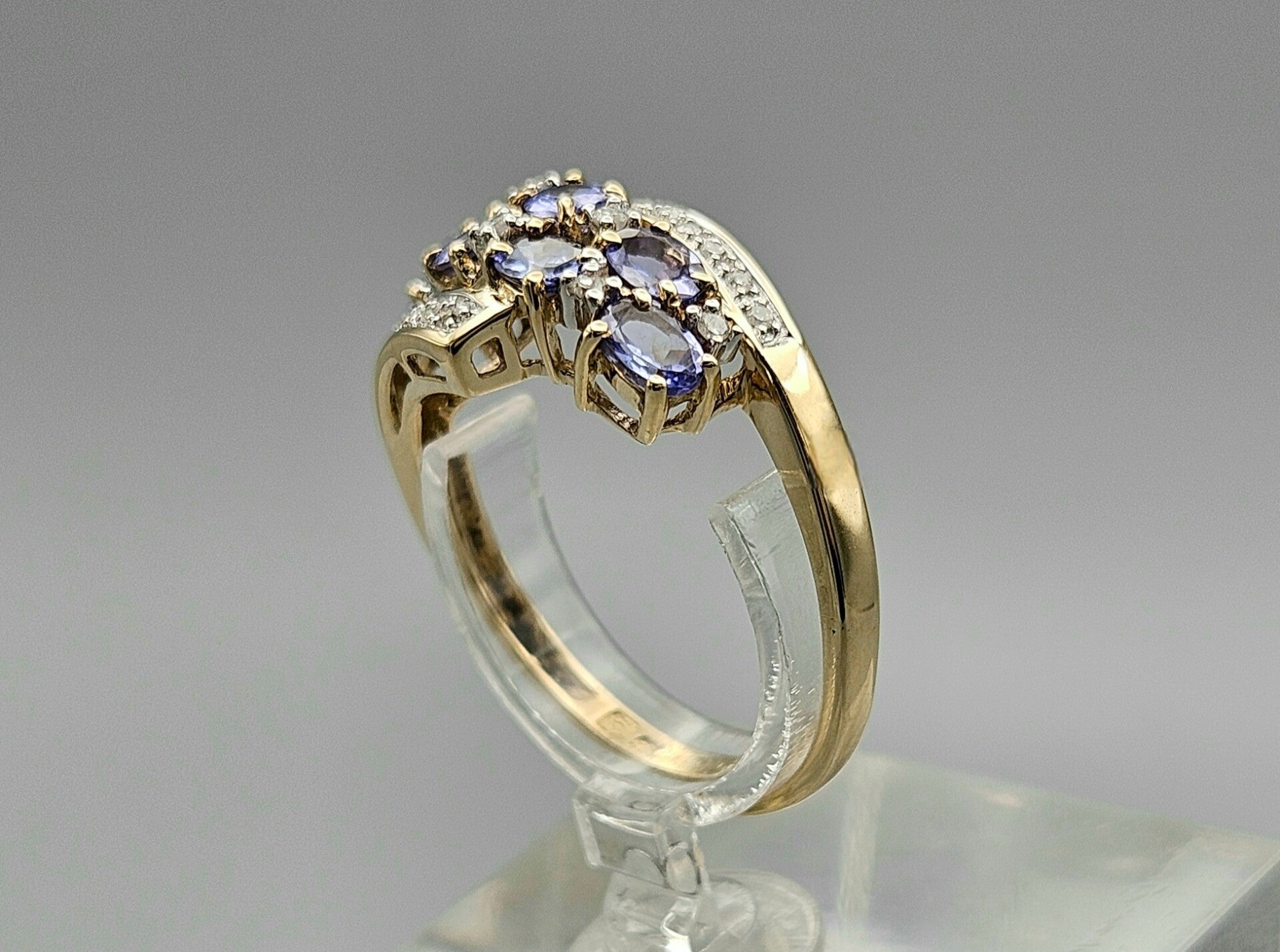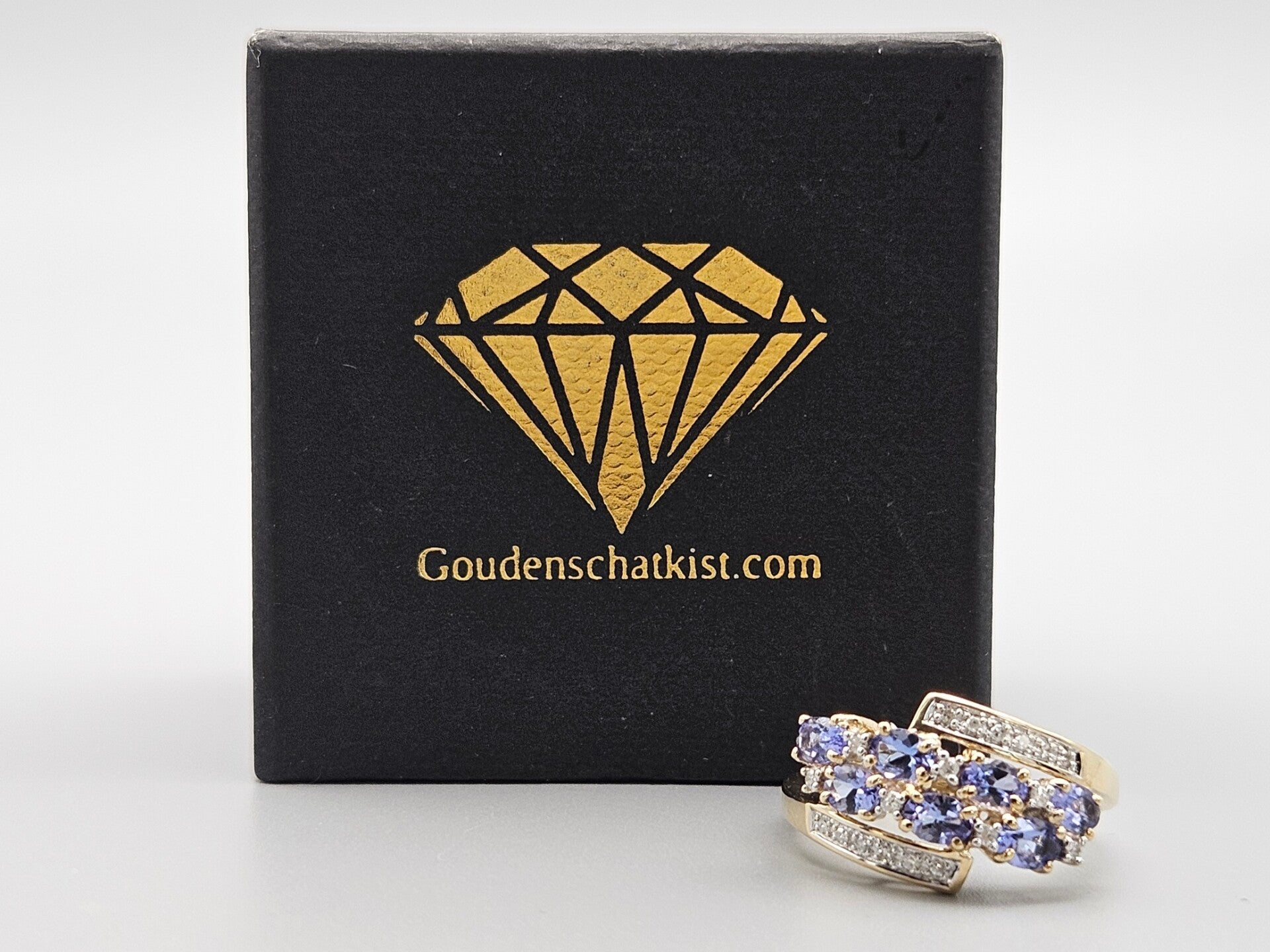 Vintage ring met edelsteen tanzaniet en diamant. 2025/410