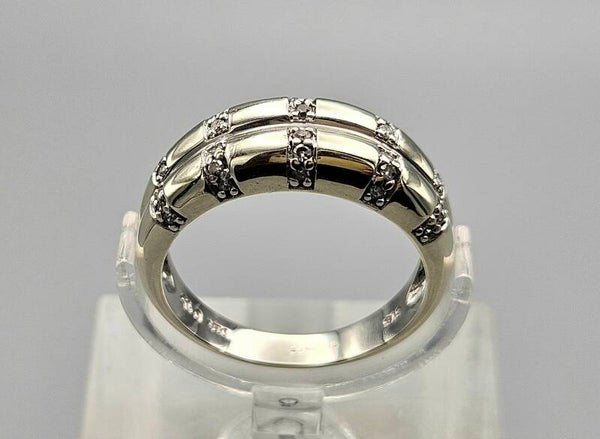Deze vintage design ring met diamanten is bijzonder door zijn vorm en de diamanten, die een gewicht van 0.15 ct hebben. De ring is gemaakt van 9 karaat. In het echt veel mooier dan op de foto's heel veel schittering.