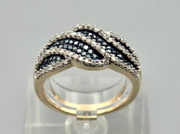 Een absolute vintage eye-catcher en zeer exclusief item! Deze exclusieve ring met diamanten en blauwe diamanten is bijzonder door zijn vorm en de vele diamanten, die een gewicht van 1.2 ct hebben. In het echt veel mooier. Moeilijk te fotograveren.