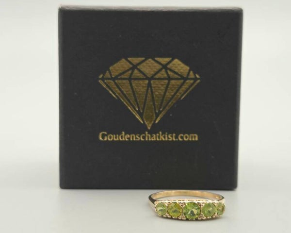 Een mooie bijzondere vintage ring die van je vinger spat! Deze vintage ring is gemaakt van 9 karaat en is gezet met briljant geslepen peridot.